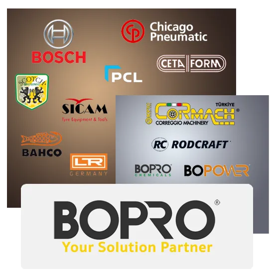BOPRO olarak, otomotiv ve lastik sektörünün her aşamasında ihtiyaç duyduğunuz ekipman ve hizmetleri A’dan Z’ye tek çatı altında sunuyoruz. Yenilikçi çözümlerimiz, yüksek kalite standartlarımız ve sektöre özel uzmanlığımızla, iş süreçlerinizi hızlandırıyor, maliyetlerinizi düşürüyor ve verimliliğinizi arttırarak işletmenize katma değer sağlıyoruz. Güçlü tedarik zincirimiz ve müşteri odaklı yaklaşımımızla, her zaman yanınızdayız.