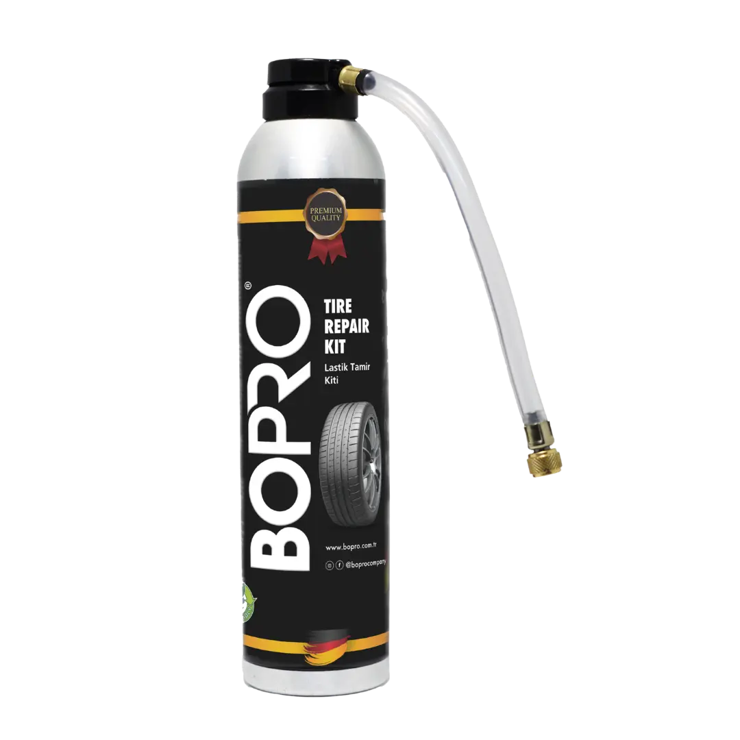 BOPRO lastik tamir kiti sprey, ani lastik patlamalarında hızlı ve pratik çözüm sunmak için geliştirilmiştir.