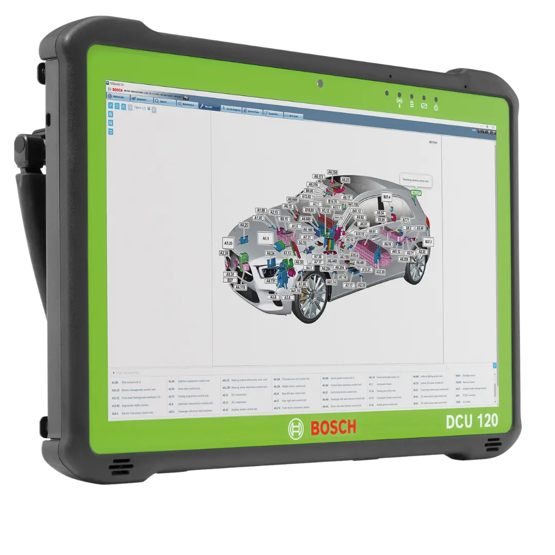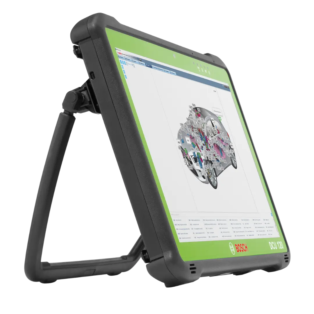 Bosch DCU 120, oto servisler için geliştirilmiş taşınabilir, dayanıklı ve yüksek performanslı diagnostik tablet bilgisayardır.