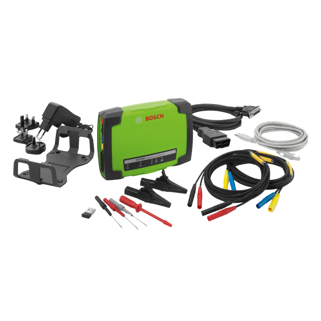 Bosch KTS 590 arıza tespit cihazı, binek ve hafif ticari araçlarda hızlı ve kapsamlı arıza teşhisi yapmanızı sağlayan profesyonel OBD diagnostik cihazıdır.Çift kanallı multimetre özelliği, gelişmiş diagnostik teknolojisi ve geniş araç desteği sayesinde arıza tespit süreçlerini daha hızlı ve kapsamlı hale getirir.