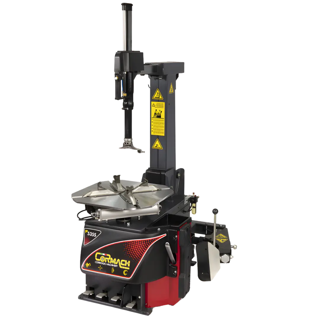 Cormach F535S GT RF SYSTEM lastik sökme takma makinesi; runflat uyumlu yapısı, pnömatik yardımcı sistemleri ve entegre şişirme teknolojisi ile hızlı, güçlü ve güvenli lastik değişimi sağlar.