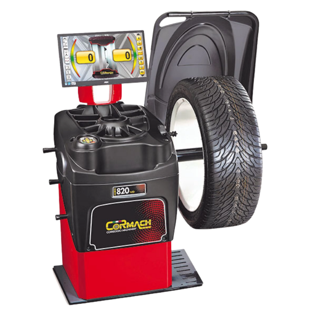 Cormach MEC 820 VD, oto servisleri için geliştirilmiş otomatik ölçüm özelliklerine sahip elektronik lastik balans makinesidir.