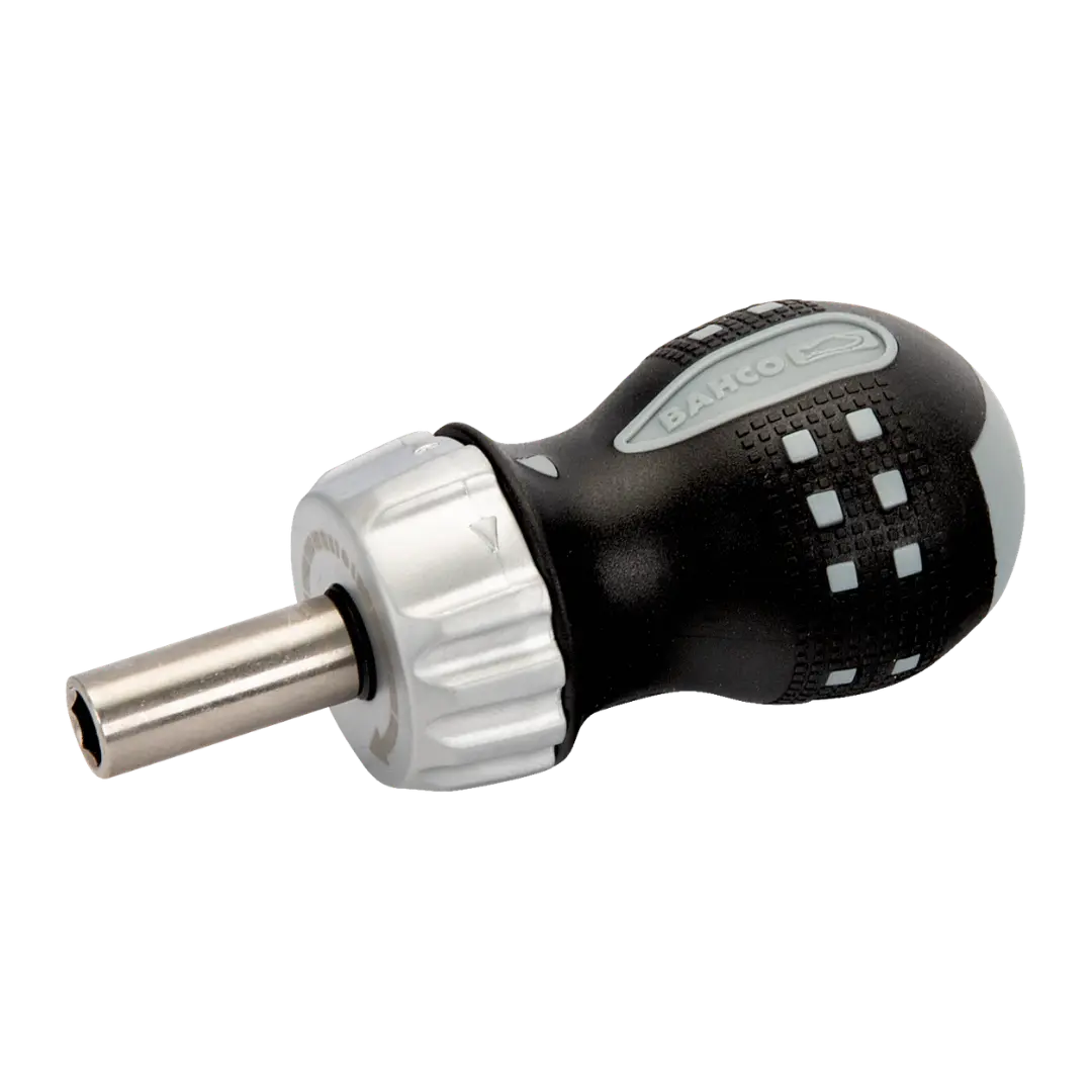 Bahco  topaç cırcırlı tornavida, dar alanlarda kolay kullanım sağlayan kompakt yapısı ve 48 dişli mekanizması ile profesyonel vidalama işlemleri için geliştirilmiştir. 1/4” bit uyumluluğu ile geniş kullanım alanı sunar.