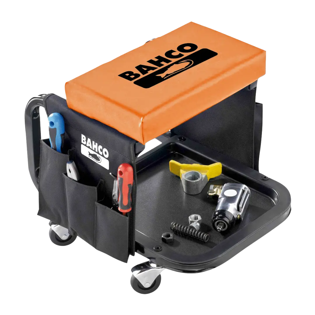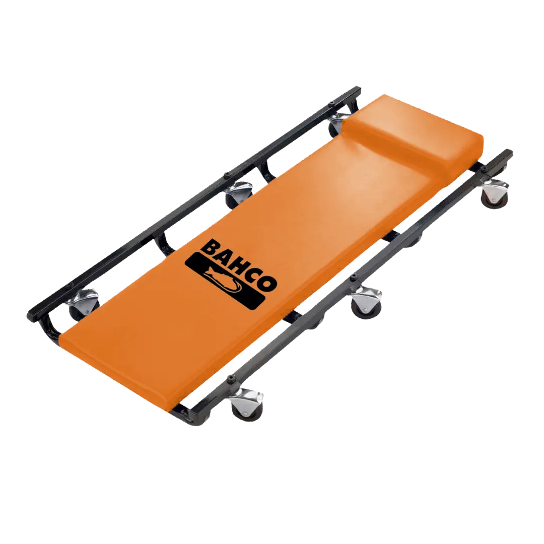Bahco katlanır yatma tahtası ve tabure seti, araç altı çalışmalar ve servis işlemleri için geliştirilmiş 2’si 1 arada profesyonel ekipmandır. Yüksek konforlu sünger yapısı ve döner tekerlekleri ile rahat ve pratik kullanım sağlar.