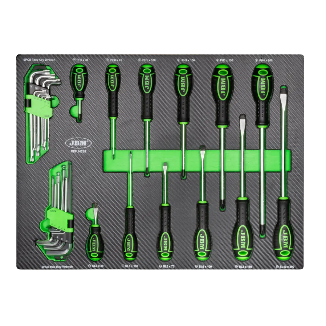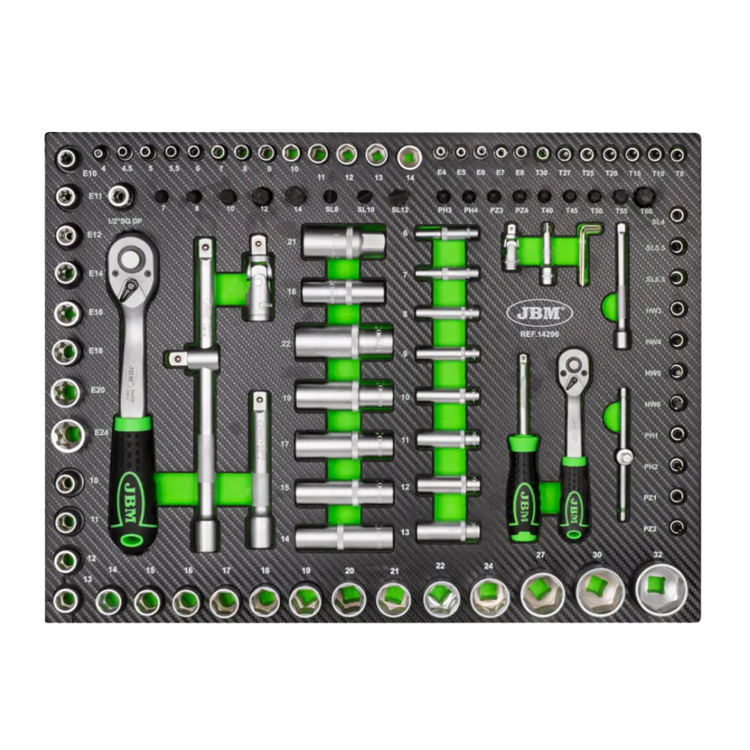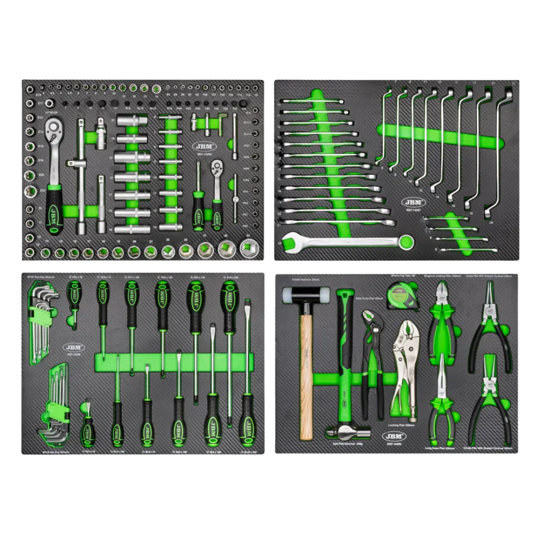 JBM 53708 EVA karbon modül seti, el aletlerini düzenli ve sistemli şekilde kullanmak isteyen profesyoneller için geliştirilmiş kapsamlı bir çözümdür. 4 farklı modülden oluşan bu set, farklı alet gruplarını bir arada ve düzenli şekilde sunar.