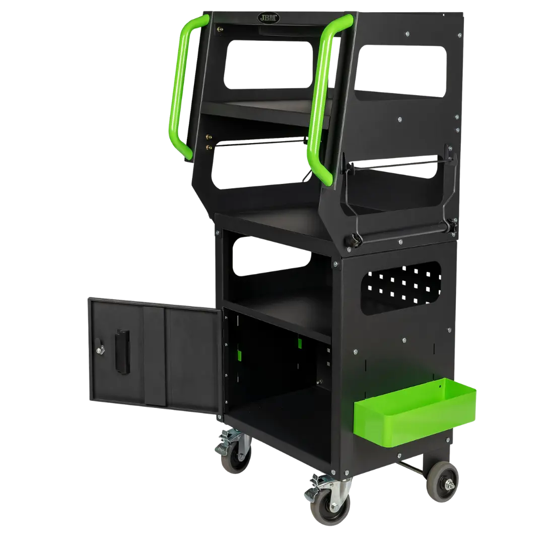 JBM diagnostik servis arabası, arıza tespit cihazları, laptop ve servis ekipmanlarını düzenli ve mobil şekilde kullanmak için tasarlanmış çok amaçlı profesyonel çözümdür.