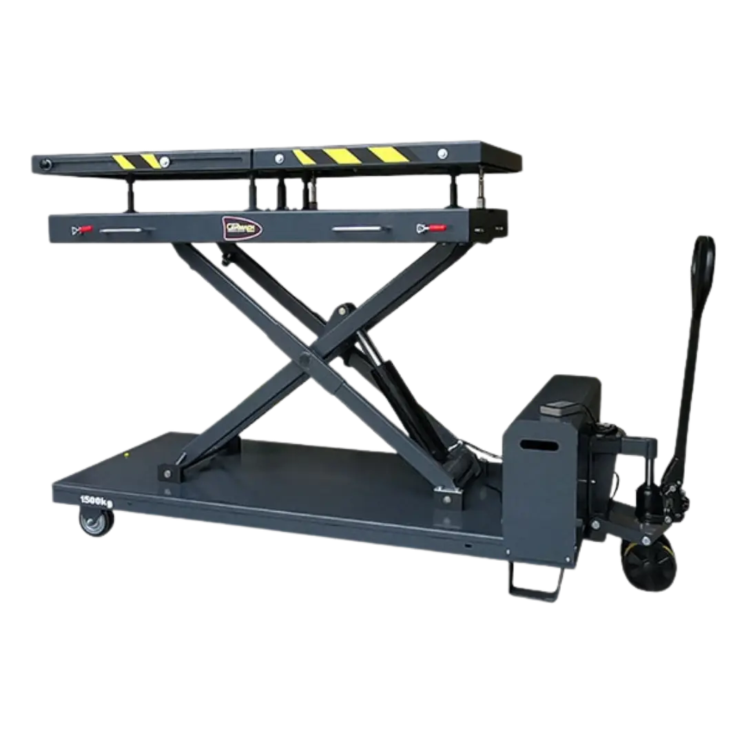 Cormach L 1500 A , elektrikli araç bataryaları ve ağır araç bileşenlerinin sökülüp takılması için geliştirilmiş profesyonel mobil hidrolik makaslı lift sistemidir.